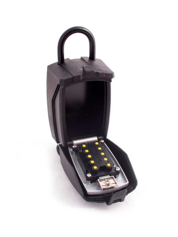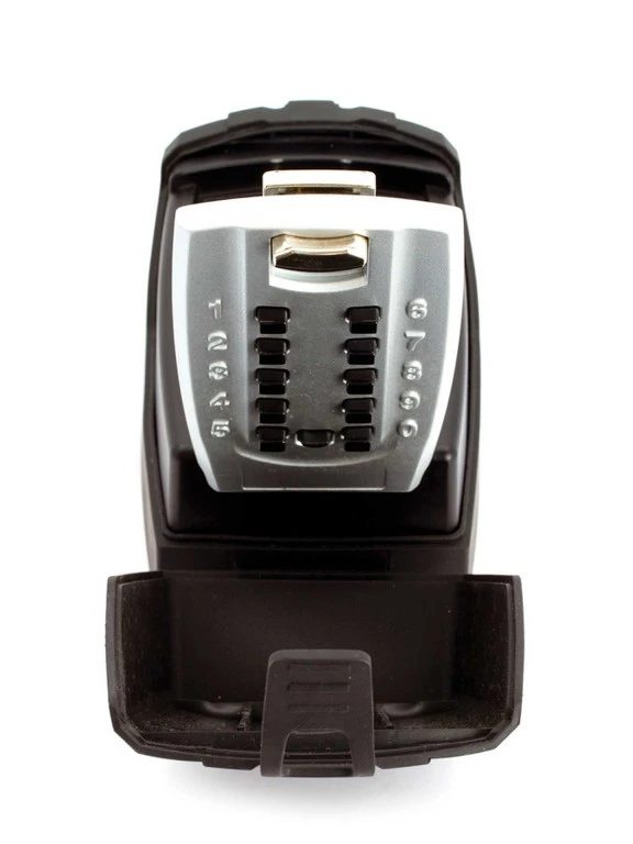 Push button combination locking system. Large key storage area – fits most key types. Heavy duty toughened steel metal case. Weatherproof Cover.